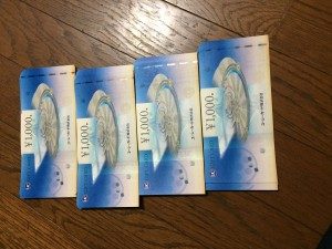 ちょーっとわかりにくいですが、今回のキャンペーンのために用意した商品券7万円(1000円70枚)分ですw