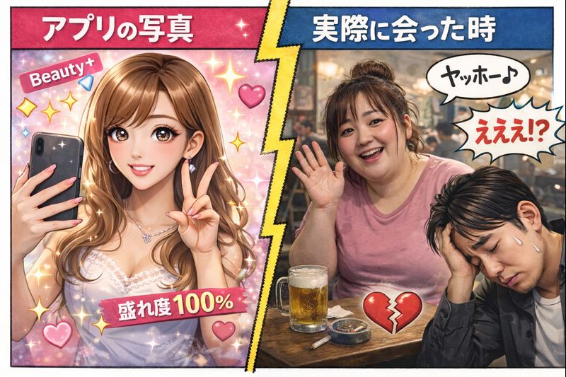 せっかくウキウキしながら待ち合わせ場所まで来たというのに、写真詐欺のせいでやけ酒することになりますよ。
